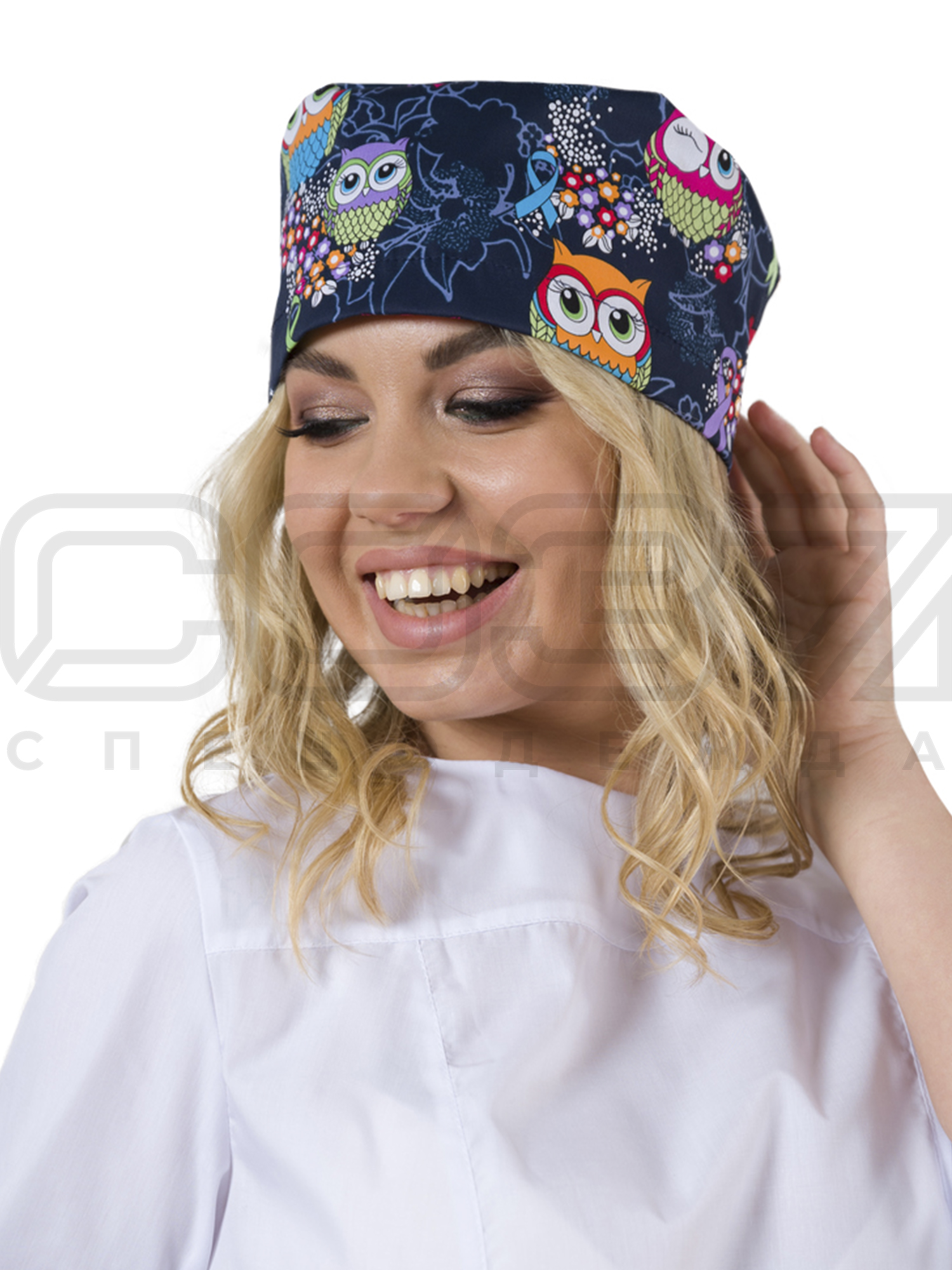 Колпак медицинский на резинке ИМ603(N6-Y2) цв.тёмно-синий/рисунок совы тк.стрейч в Брянске