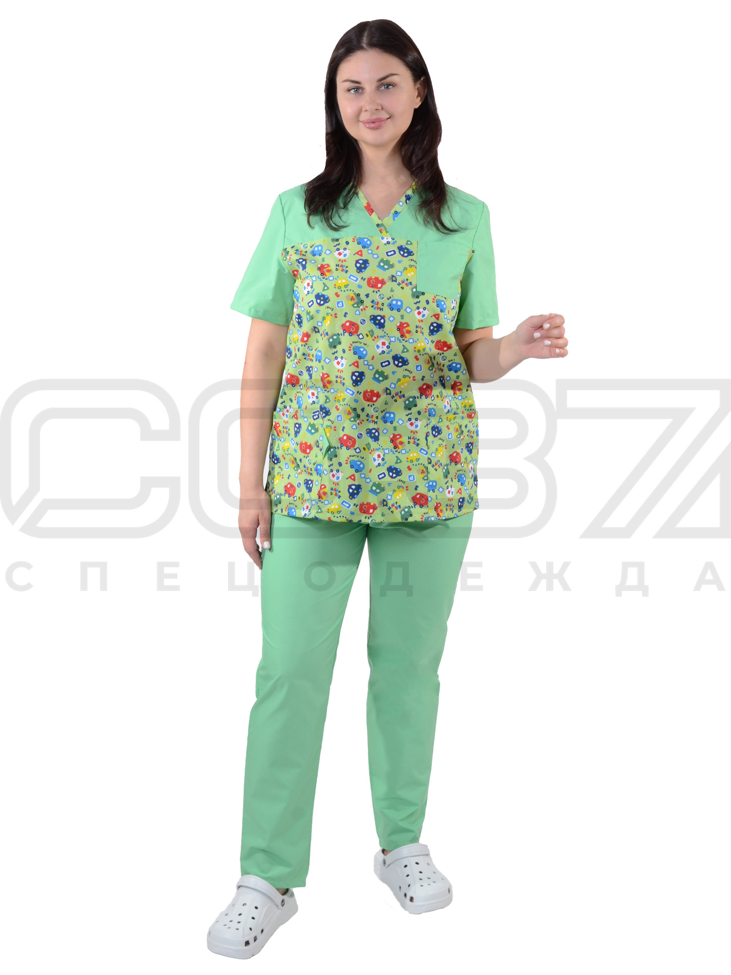 Костюм медицинский женский цв.зелёный/принт тк.тиси в Брянске