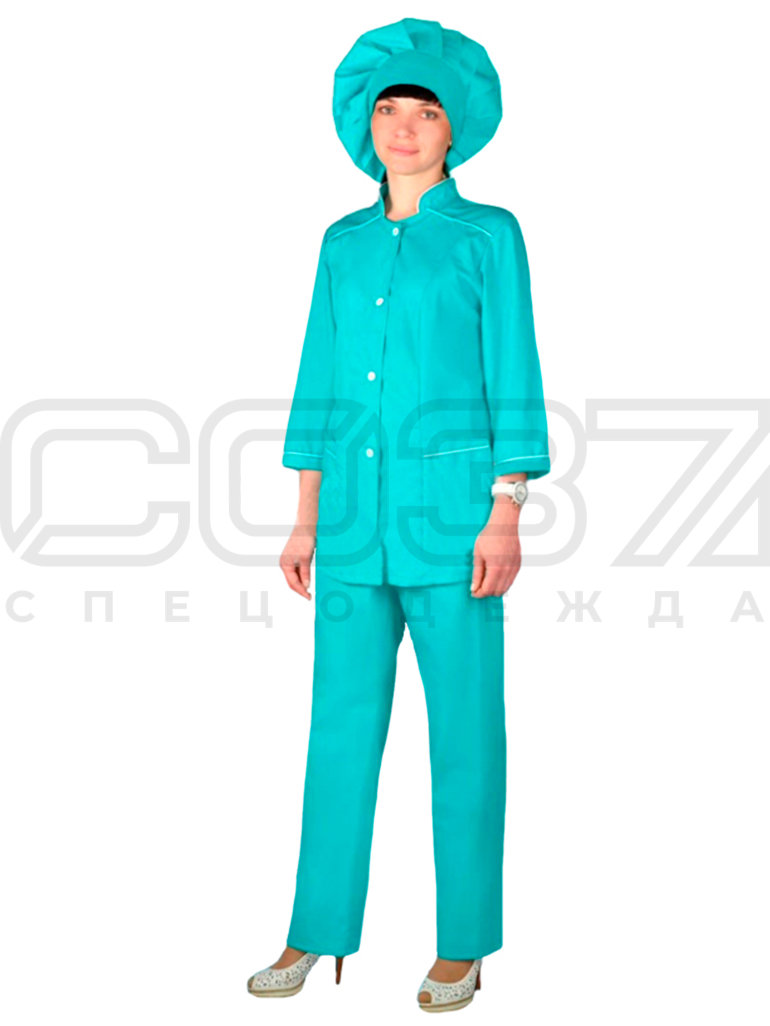 Костюм повара женский "Сушеф" цв.бирюза тк.тиси в Брянске