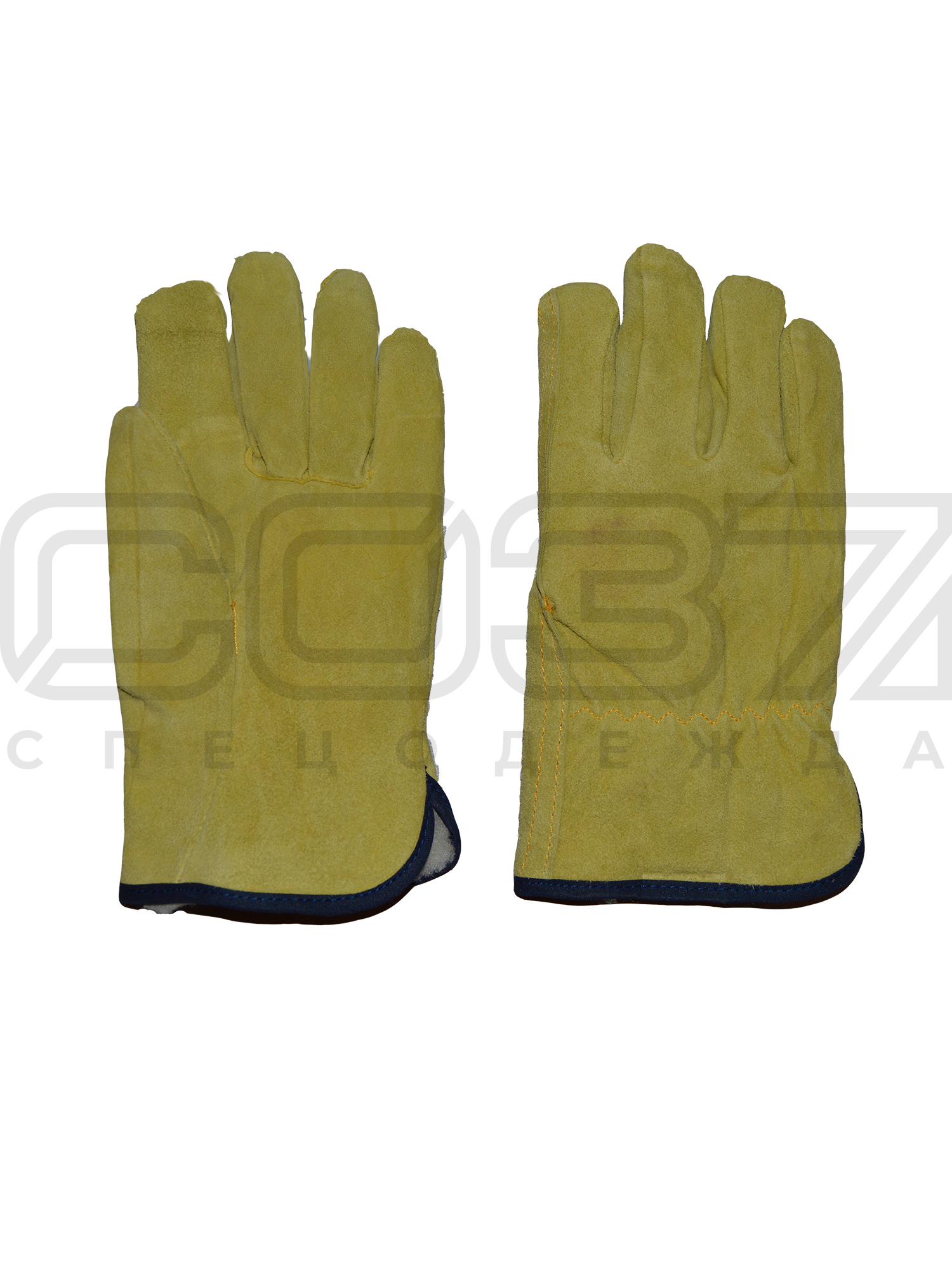 - Перчатки сшиты из высококачественного спилка КРС, равномерно прокрашенного в жёлтый (золотой) цвет.